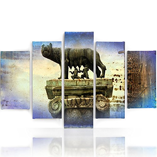 Feeby Frames, Quadro multipannello di 5 Pannelli, Quadro su Tela, Stampa Artistica, Canvas Tipo A, 100x200 cm, Roma,LUPA, Remus,Scultura, MONUMENTO, Blu, Giallo