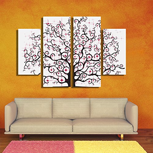 Feeby Frames, Quadro multipannello di 4 Pannelli, Quadro su Tela, Stampa Artistica, Canvas Tipo B, 80x60 cm, Albero, Rami, Natura, Astratto, Colore, Design, Disegno