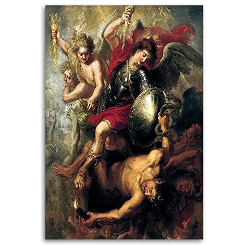 Feeby Quadro su Tela 40x60 cm L'Arcangelo Michele abbatte Lucifero - P. P. Rubens 1 pezzo Stampa Murale Fotografia Decorazione da parete per Soggiorno Camera da Letto Ufficio RIPRODUZIONE multicolore