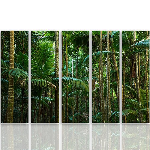 Feeby Quadro su Tela multipannello Giungla Tipo C 200x100 cm 5 pannelli Stampa Murale Decorazione Immagini Moderni per Soggiorno Camera da Letto Ufficio Cucina Felce Foresta Natura Verde