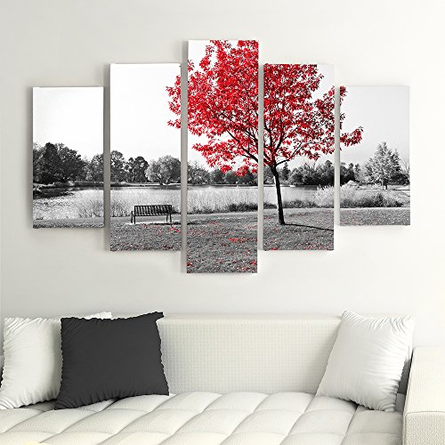 Feeby Quadro Su Tela Parco Vicolo 5 Pezzi Tipo A 100x70 cm Stampa Murale Decorazione da parete Immagini Moderni per Soggiorno Camera da Letto Ufficio Cucina One Color Albero Bianco E Nero Rosso