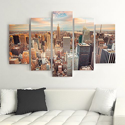 Feeby Quadro Su Tela 5 Pezzi New York Tramonto Arancione 100x150 cm Tipo A Stampa Murale Fotografia Decorazione da parete Immagini Moderni per Soggiorno Camera da Letto Ufficio Cucina Blu Grau
