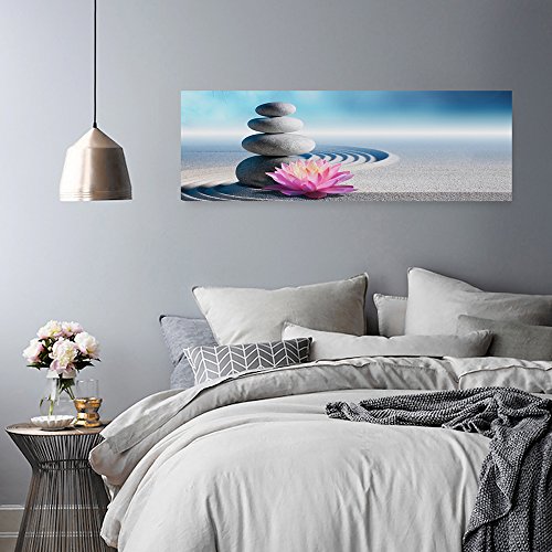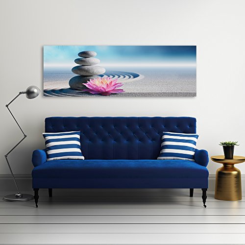 Feeby Quadro Su Tela Pietre Fiore 70x25 cm 1 pezzo Stampa Murale Fotografia Decorazione da parete Immagini Moderni per Soggiorno Camera da Letto Ufficio Cucina Sabbia Zen Viola Blu Grigio