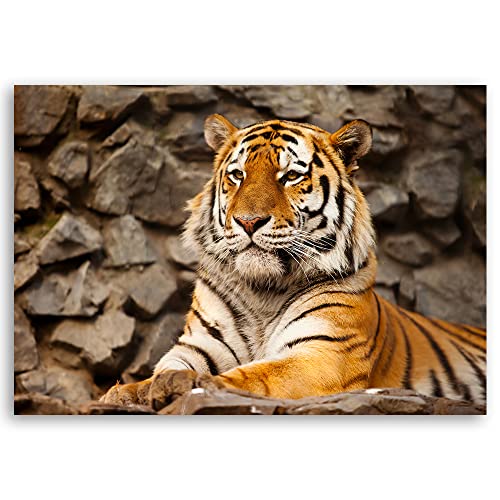 Feeby Quadro Tela Non Tessuta Tigre del Bengala Rocce Posa Grande gatto 30x20 cm Qualita Fotografica Stampa D'Arte Camera Da Letto Riposo Predatore Animali selvatici arancione