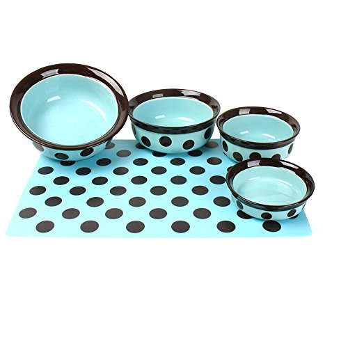 Feed-Time - Hand Painted Stoneware Pet Dish 7inch Teal/Brown
