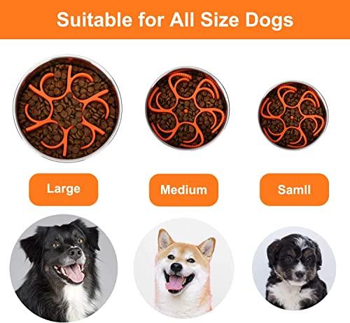 Slow Feeder per Ciotole per Cani, Accessorio per Cani Mangiare Lentamente, Dimensione Regolabile Antiscivolo, Alimentatore per Rallentare il Cibo per Cani di Taglia Grande (Arancione)
