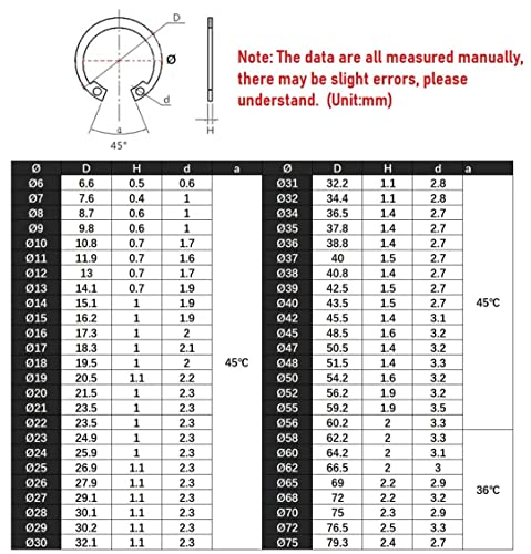 [Materiale]: L'anello a scatto è realizzato in acciaio al manganese 65MN, di elevata durezza e lunga durata, che garantisce una buona resistenza alla corrosione e alle alte temperature.