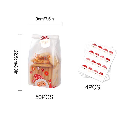 Feelava Sacchetti per biscotti, per regali Natale 50 pezzi traslucidi Autoadesivo di plastica di Babbo Natale per torta Caramelle Snack al cioccolato Panetteria Pane Cupcake Ciambelle
