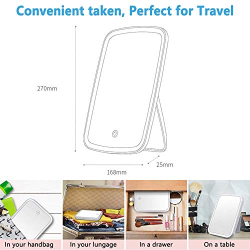 FeelGlad Specchio cosmetico con luce, specchio da trucco a LED con interruttore touch, dimmerabile, con USB, ricaricabile, per trucco, rasatura e cura del viso