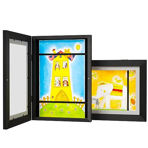 Feelhap 2Pcs Cornice Porta Disegni Bambini,Cornici per Disegni per Bambini A4 Cornice d'Arte per Bambini con Apertura Frontale,Contiene Fino A 50 Opere D'Arte Per Il Disegno Artigianale,Nero