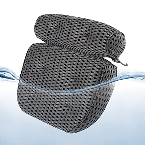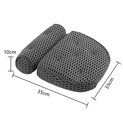 Feelhap Cuscino da Bagno,Cuscino per Vasca da Bagno con 7 Ventose,Cuscino Vasca da Bagno 4D Mesh Cuscino Poggiatesta Ergonomico,Cuscino per Il Supporto della Schiena,delle Spalle E della Testa,Grigio