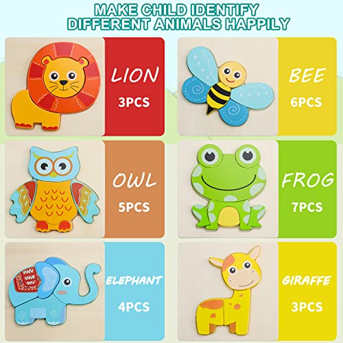 Adorabile Puzzle Set Animali: Puzzle in Legno Animali per Bambini giocattolo contiene 6 puzzle animali include Elefante, Giraffa, Ape, Rana, Gufo, leone, diversi colori e animali aiuteranno i tuoi bambini a conoscere il mondo. Colori vivaci e luminosi e forme e disegni di animali carini e divertenti attirano l'attenzione dei bambini. Ottimo per raccontare storie divertenti! Sorprendi il tuo piccolo con questo set di puzzle animali in legno!