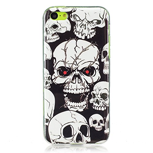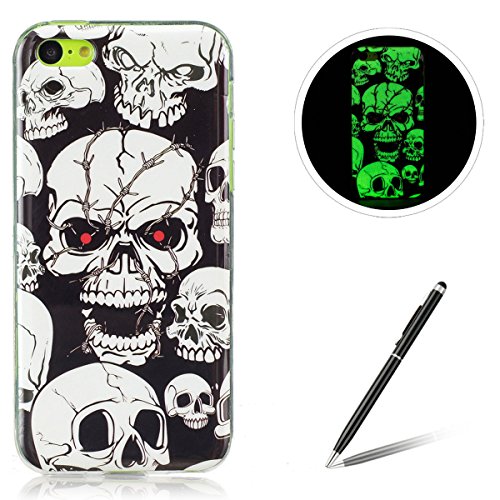 Feeltech Cover per iPhone 5C Custodia in Silicone Paraurti flessibile Casso Protettiva in TPU Copertura Pelle Shell Effetto Luminoso Nottilucenti Green Glowi In the Dark Matte - Cranio
