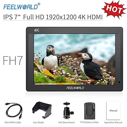 Feelworld FH7 Camera Monitor 7" 4K HDMI Ultra HD 1920x1200 Campo Video LCD Schermo IPS 1200:1 Alto Contrasto per Cam Steady, DSLR Rig, Kit Videocamera, Stabilizzatore Palmare