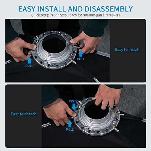Compatibile con le luci con attacco Bowens: Il design universale del supporto Bowens consente un rapido montaggio e smontaggio tra luci e accessori.