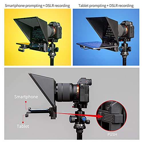 Feelworld TP2 Portable Teleprompter Kit per Smartphone iPad Tablet Fotocamere DSLRCompatibile con iOS/Android per la Registrazione Video Intervista in Streaming Live