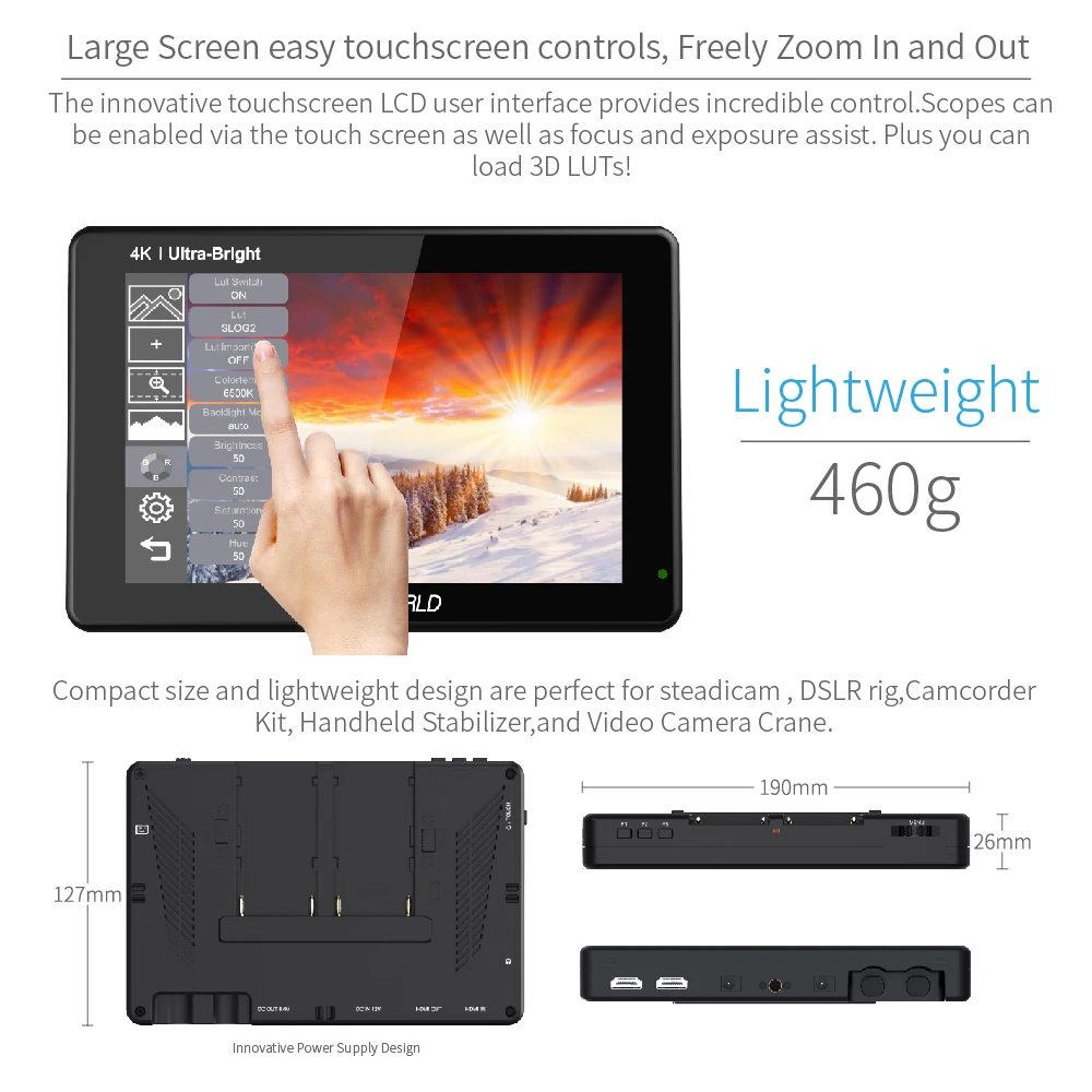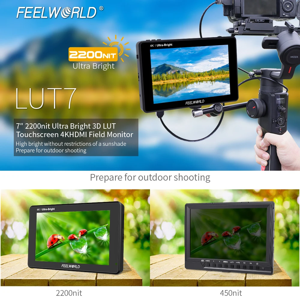 FEELWORLD LUT7 Touch Screen 2200cd/m 3D LUT DSLR Monitor 4K HDMI 7 inch Full HD 1920x1200 IPS Display Field Monitor for Camera
