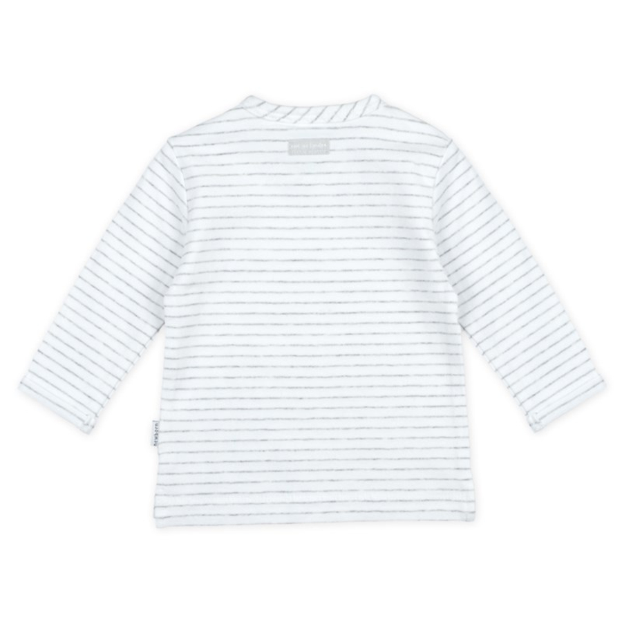 Dettagli prodotto: Camicia a maniche lunghe a righe con logo print sul petto Scollo rotondo Bottoni a pressione su una spalla Con spacchetti sull'orlo Tessuto morbido ed elastico Materiale e cura: Materiale: 94% cotone (organico), 6% elastan Lavabile fino a 40 °C Non adatto all'asciugatura in asciugatrice Non stirare a caldo