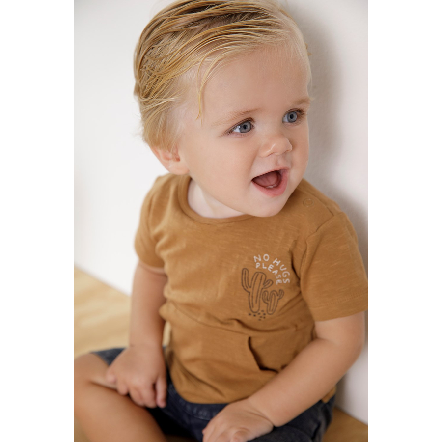 L'azienda olandese Feetje vi offre una selezione colorata di Design s alla moda in super qualità - e il tutto arrotondato ad un prezzo giusto. Una varietà divertente di grandi collezioni - sempre combinabili. Bella maglietta in marrone con ricamo sul petto e una grande tasca sulla pancia. I bottoni a pressione sulla spalla lo rendono facile da mettere e togliere. Fresco Design per l'estate. Dettagli del prodotto: Colore: marrone Materiale: 95% cotone, 5% elastan Motivo: ricamo