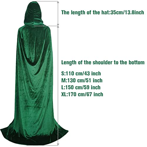 Feeziloe Mantello con cappuccio per Halloween, mantello in velluto per Halloween, Natale, costume triste mietitore, festa vampiro, strega del diavolo Cosplay (XL-170 cm)