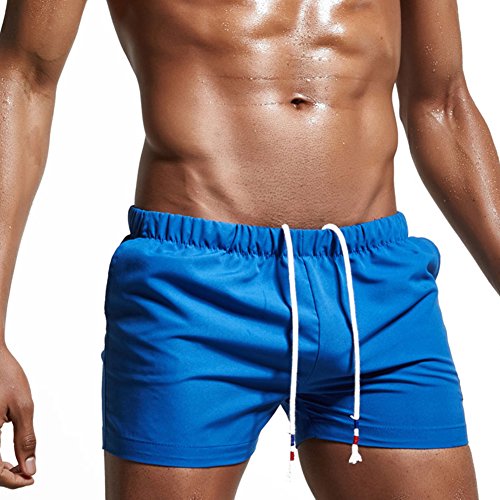 Feicuan Uomo Solid Color Board Calzoncini Costume da Bagno con Taschino -L12