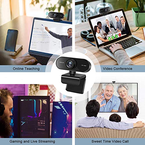 Webcam USB 1080P Full HD - La webcam per PC è dotata di una risoluzione 1080P reale, fornisce un'immagine nitida a 30 fotogrammi al secondo, offrendoti un tempo video fantastico e il miglior aspetto di te tutto il tempo.Qualità dell'immagine ad alta definizione con efficiente e stabile le trasmissioni video / audio sono la scelta migliore per videoconferenze, videochiamate, live streaming, lezioni online, giochi e registrazioni.