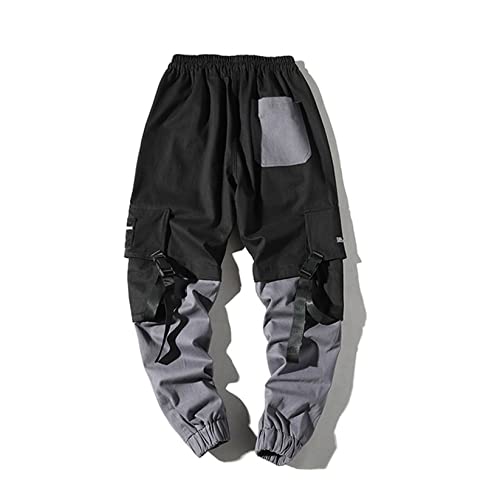 Feidaeu Pantaloni Street Sportivi Multitasche da Uomo Harajuku Nastri Cuciture Colore Pantaloni Cargo Hip Hop Punk Pantaloni Casual Autunno e Inverno All'aperto