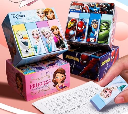 Feifei'S Bow 12 gomme da cancellare in gomma Spiderman Superhero Princess Elsa Marvel Avengers per matite in gomma per bambini, scuola, cancelleria per feste, bomboniere, set regalo (Spiderman)