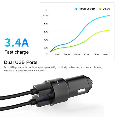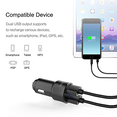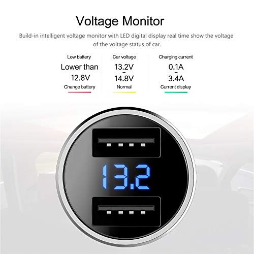 FEIGO LED Caricabatteria Auto USB, Mini Caricatore Adattatore Universale 2 USB 5V 3.4A Carica Rapida per iPhone X / 8/7 / 6 / Plus, iPad, Galaxy S8 / S7 /Edge, Huawei P9 / P10