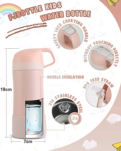 Feijian Borraccia per bambini da 400 ml con coperchio cannuccia, in acciaio inox privo di BPA, isolamento a doppia parete, prova perdite, riutilizzabile metallo, mantiene le bevande calde 12 ore e
