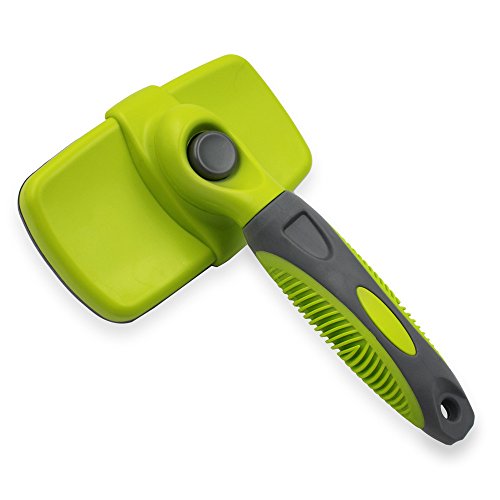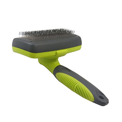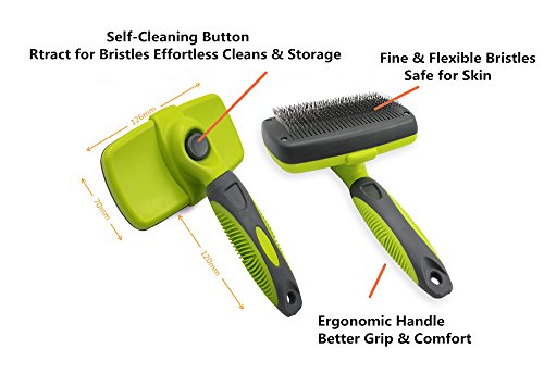 Facile pulire con una semplice pressa del pulsante. Dopo pettinare il vostro cane o gatto, bisogna premere il pulsante e i capelli sciolti rimossi. Design retrattile setole mantiene la sicurezza dell'uso di spazzola e facile da conservare quando non è in uso