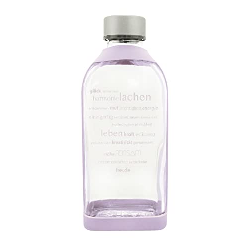 Feinsam Borraccia in vetro di design, sostenibile, senza plastica, igienica, leggera, robusta, piatta, in vetro borosilicato, 550 ml, colore: lilla