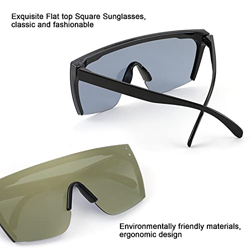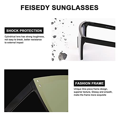 FEISEDY Shield Occhiali da Sole Donna Uomo Flat Oversize Wrap Square Occhiali senza Montatura UV400 B2761