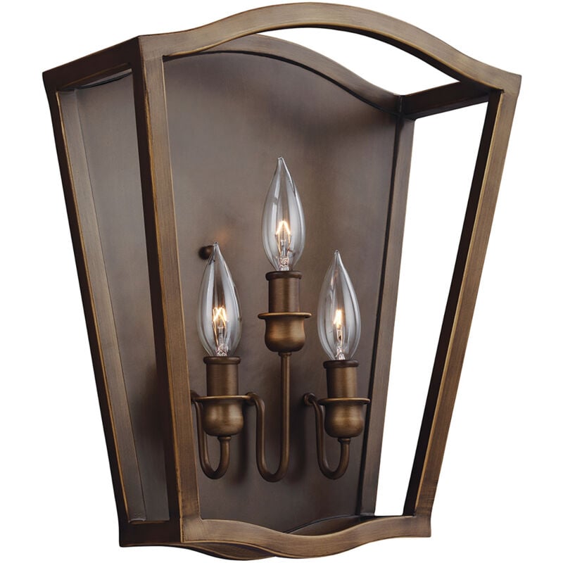 Collezione Yarmouth INTERPRETAZIONE ELEGANTE Lampada da parete a 3 luci. La collezione di lampade Yarmouth è un'interpretazione elegante e pulita delle lanterne tradizionali. Il braccio quadrato è elegantemente tornito e un arco corona la parte superiore di ogni raffinata silhouette. Completamente aperta, senza vetri, Yarmouth è disponibile nella finitura ottone invecchiato verniciato.