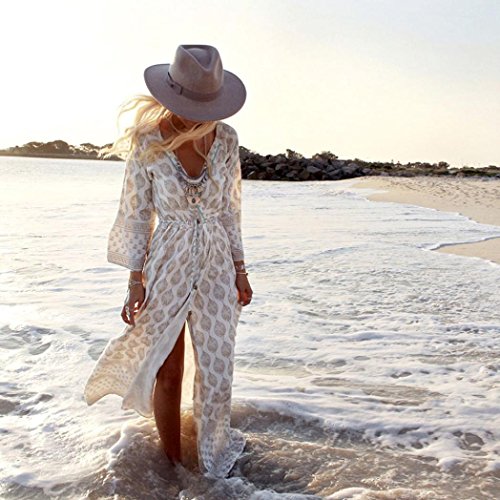 Feitong - Vestito lungo da donna, estivo, in stile boho-chic, da sera, da spiaggia o da cocktail