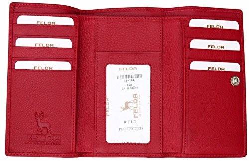 Felda portafoglio RFID da donna - 19 fessure per carte - vera pelle - multicolore - rosso