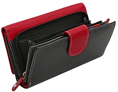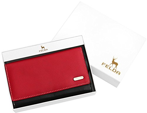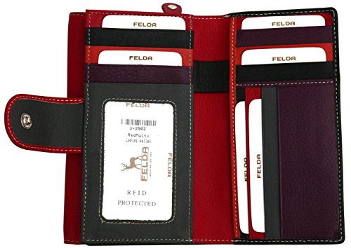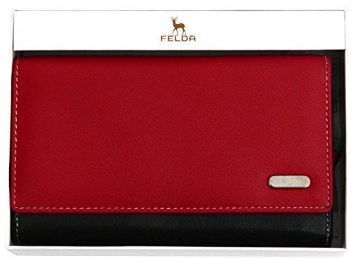 Felda portafoglio RFID da donna - 19 fessure per carte - vera pelle - multicolore - rosso e nero