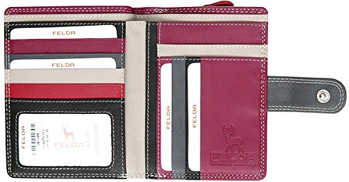 Felda - portafoglio donna RFID - 9 fessure per carte e tasca monete con zip - taglia medium - grigio multi