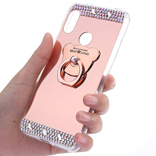 Felfy Orso Anello Custodia Compatibile con Xiaomi Mi A2 Lite Cover Specchio Silicone Morbido Diamante Cover con Anello Supporto Glitter Bling Glitter Strass Mirror Ultra Sottile Case-Oro Rosa