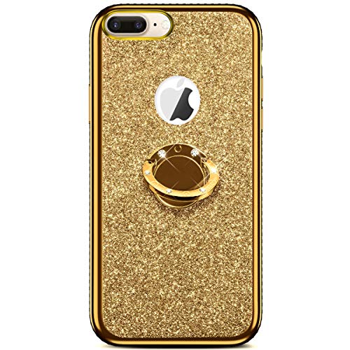 Felfy Cover Compatibile con iPhone 8 Plus/7 Plus Custodia Glitter Brillantini Diamante Strass Morbido Silicone TPU Cover con Anello Bling Cristallo Strass Placcatura Bumper AntiGraffio Case-Oro