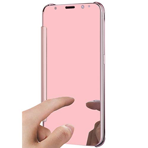 Felfy Custodia Compatibile con Galaxy S8 Cover Specchio,Custodia in Pelle Ultra Sottile Morbida Soft Cover con ID Card Magnetica Stand.Specchio,Oro Rosa
