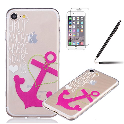 Felfy Custodia Compatibile con iPhone 7 Cover Morbida Silicone,Trasparente Crystal Clear Colorate Printed Modello Ancore Disegni Ultra Sottile Protettiva Case