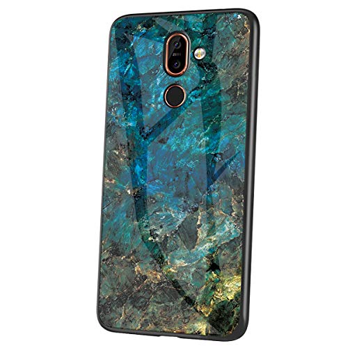 Felfy Marmo Custodia Compatibile con Nokia 7 Plus Hard Cover,Compatibile con Nokia 7 Plus Custodia Silicone Rigida + Vetro Temperato Back Case Bicchiere Rigida Antigraffio Phone Cover.verde