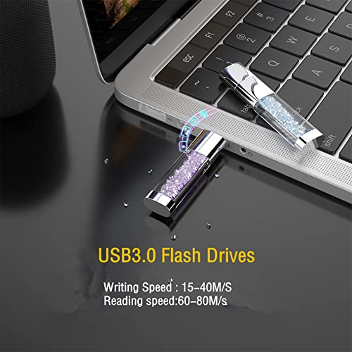 FeliSun Crystal Jewelry Chiavetta USB 3.0 Pendrive USB Stick Flash Drive Impermeabile trasparente Memory Stick Pen Drive-Fino a 80M / s (32GB, Viola)