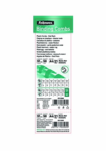 Fellowes 5350202 Dorsi Plastici Ovali per Rilegatura, 21 Anelli, Passo 9/16, Diametro 51mm, Confezione da 50 Pezzi, Bianco