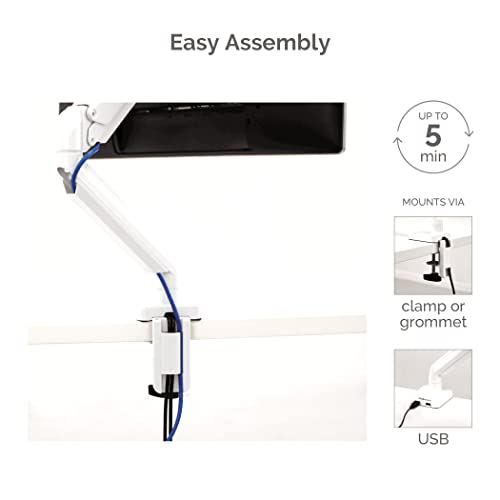 Fellowes 8056201 braccio monitor singolo Platinum Series, tecnologia a molle a gas, 2 porte USB, colore bianco