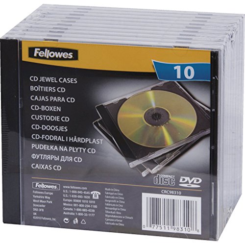 Fellowes 98310 Custodia per CD Jewel Case, Confezione da 10 Pezzi, Base Nera