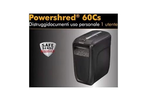 Fellowes distruggi documenti a frammento 60Cs, 10 fogli, per casa e piccolo ufficio, uso personale, cestino da 22 litri, distruggidocumenti con tecnologia Safesense, nero