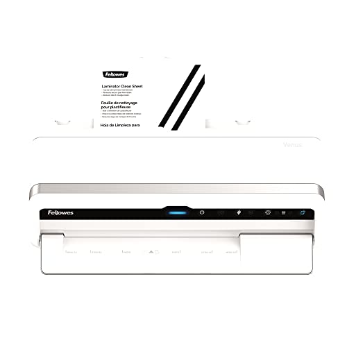 Fellowes plastificatrice a caldo Venus A3, formato A3, fino a 250 micron, per ufficio, riscaldamento rapido, con retromarcia e modalità riposo, colore bianco, incluso starter pack di 10 pouches