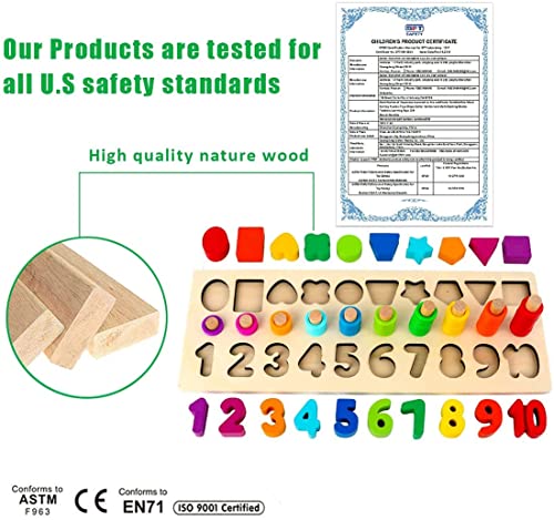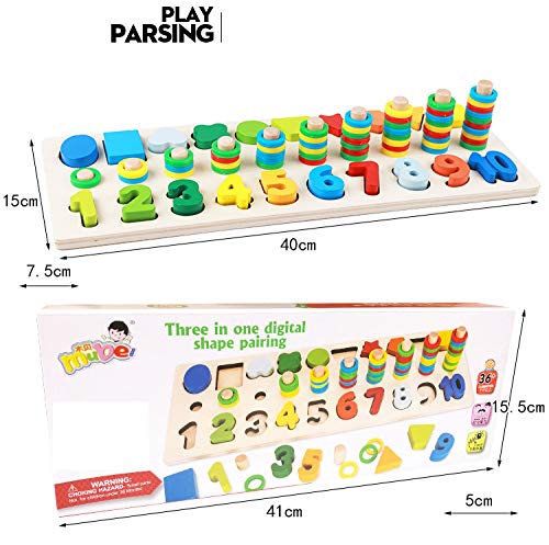 IL PACCHETTO INCLUDE:Giocattolo di puzzle di blocchi di legno include un pioli di legno, blocchi numerici 10pezzi, anelli 55pezzi e forme 10pezzi.